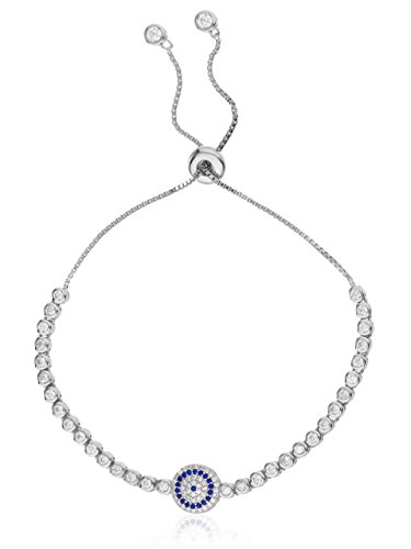 -. Title : Real 925 Sterling Silver Circle Eye Bezel Cubic Zirconia Adjustable Bracelet