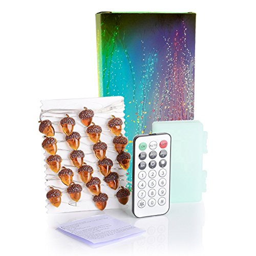 - 【Special Acorn Icon Design】 10 ft sliver plated copper wire and 40 LED bulbs, the acorn icon size is 5/8 x 7/8 inch. The led string lights for indoor/covered outdoor use, easily set or wrap, safe and never go hot (silver plated copper wire, longer life, meets IP64 requirement). WARNING: DO NOT soak battery box in water.