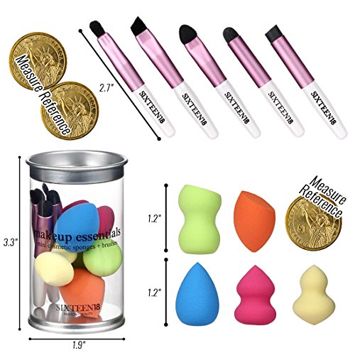 Studio : Bundle Monster Publisher : Bundle Monster Binding : Misc. Product Description Sixteen18's 10 piece makeup brushes and blending sponges travel size kit comes with 5 assorted micro beauty blending sponges and 5 assorted mini cosmetic brushes. Our contour sponges are soft, smooth, and latex-free! Our mini beauty blender puffs are perfectly small and come in various shapes for precision blending, contouring, and applying concealer, foundation, blush, liquids, and powders to hard-to-reach surfaces on your skin. Use these silky smooth sponges wet or dry for a flawless finish every time. Our compact makeup brushes are perfect for applying, blending, smudging, and lining with eyeliners, eyebrow powders, and eye shadows. This is the wonderful set for girls constantly on-the-go. Our pocket-sized travel make up brushes and sponges are small and lightweight enough to throw in your clutch, evening purse, carry-on, suitcase, backpack, gym bag, desk drawer, or car glove compartment. This tiny set comes in a small and lightweight container, perfect for vacations, holidays, sleepovers, business trips, and everyday visits to school, work, or to the gym. *DIMENSIONS: Container size is 3.25in x 1.75 x 1.75in (LxWxH). Brush sizes range from 2.45in to 2.6in; Mini beauty blender sizes range from 1.15in to 1.25in. 0