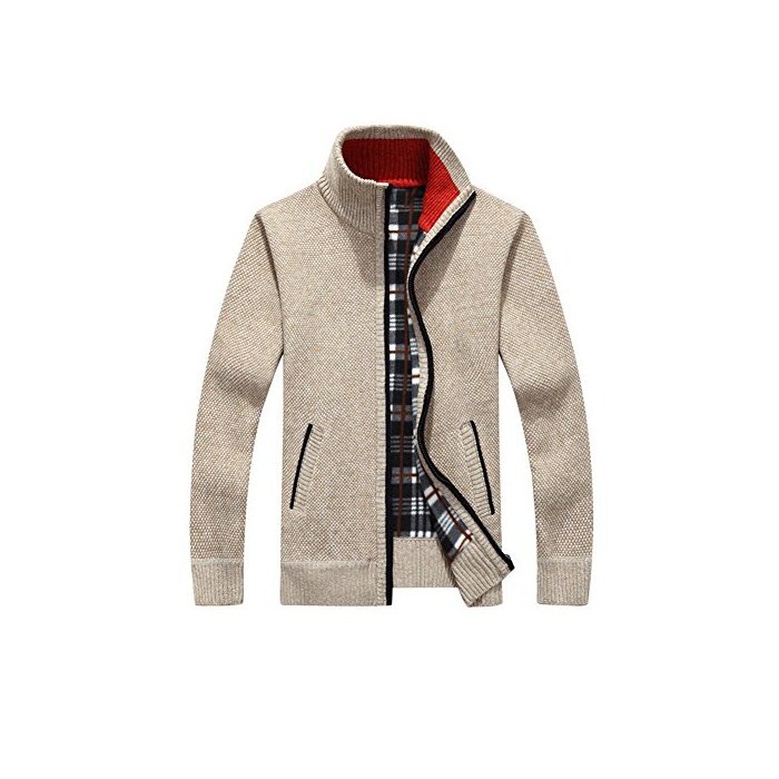 LLXNN 맨즈 스웨터 가디건 재킷 긴 소매 ZIP 스탠드 컬러 (베이지, M)