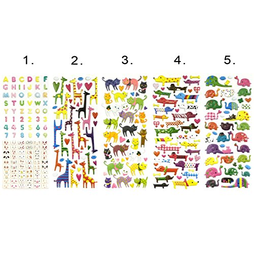 Allydrew 3D puffy Adhesive Stickers for Crafts and Scrapbooking (5 Sheets), Letters and Numbers, Animals