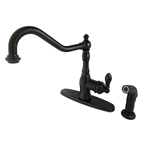 Kingston Brass Gourmetier GS7705ACLSP American Classic Single Handle Kitchen Faucet with Sprayer and Deck Plate, Oil Rubbed Bronze