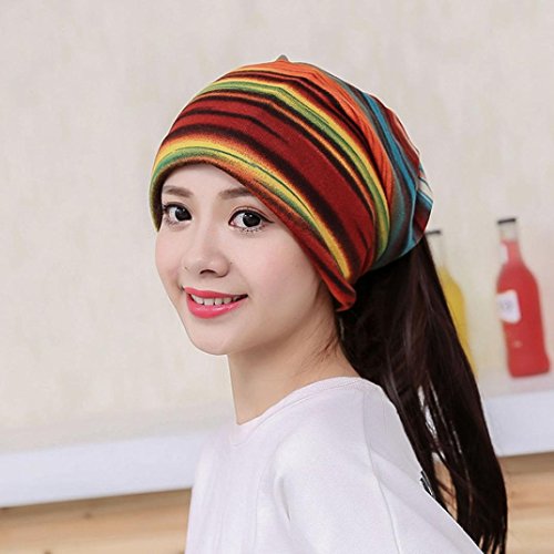 (Showking)/Accessories/Hats/DIRECT FROM USA/Showking Women Cashmere Stripe Ruffle Cancer Beanie Scarf Collar Turban Head Wrap Cap