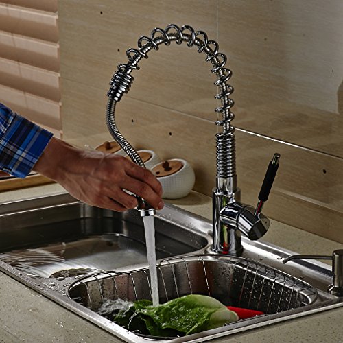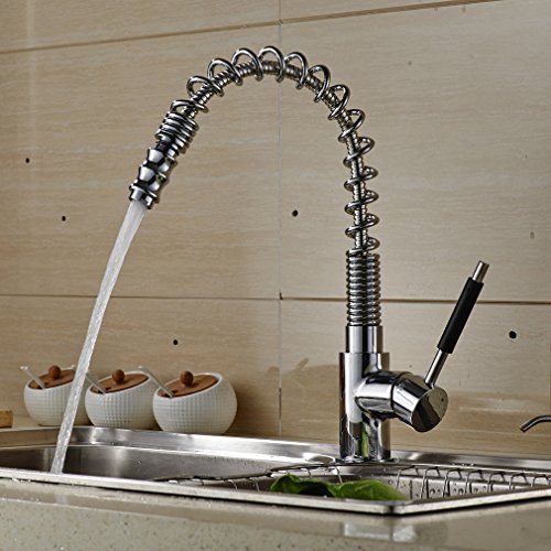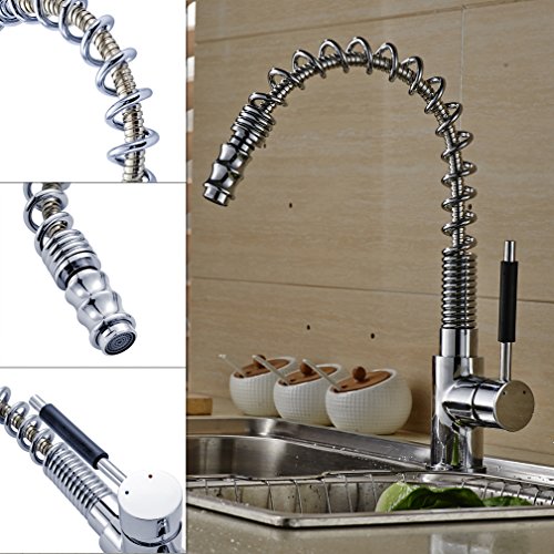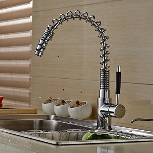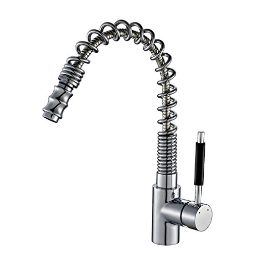 ROVATE Single Handle Pull Down Kitchen Faucets, 360 Degree Swivel Pull Out Sprayer Polished Chrome