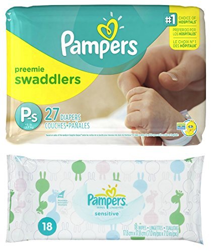-. Feature : One Pack of Pampers Swaddlers Preemie (27 count) and One Pack of Sensitive Wipes (18 count)