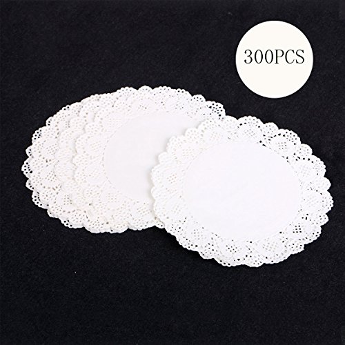 Doilies White Lace Paper Doilies Round Cake Packaging Pads, 300 Pieces