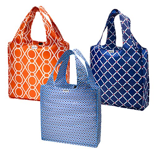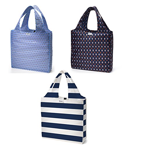 RuMe Medium Tote bag trio includes 3 packable bags in beautiful complementary patterns. Carry groceries, papers, one large thing or dozens of little things