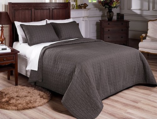 Chezmoi Collection 3-Piece Vintage Washed Solid Cotton Quilt and Shams Set, King, Gray