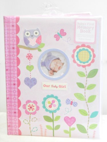Baby's First Memory Book "Our Baby Girl" Pink with Flowers, Owls, Hearts, & Butterflies