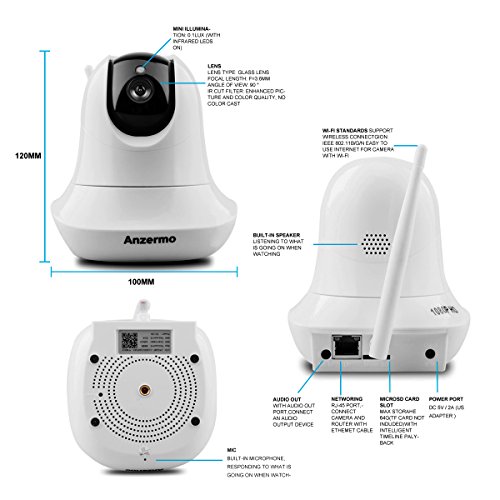 - Two way-Audio: You can hear what's going on in the room you're monitoring, and through our mobile app, you can speak directly to anyone in your room. This feature lets you use the ANZERMO as a security camera at your front door, trained on your valuables, or to monitor your child, pets or playroom. 64G external Micro-SD card with FAT32 format can allow you easily to look back the video while you are not at home.