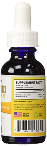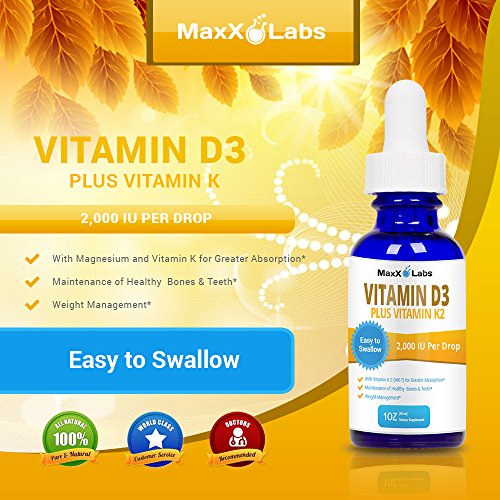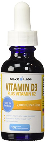-. Binding : Health and Beauty -. Brand : MaxX Labs -. Color : Blue -. EAN : 0753807137645 -. Feature : ✔ VERITABLE HEALTH POWERHOUSE supporting healthy immune systems and resistance against disease. / ✔ POTENT FORMULA DELIVERS 2,000 IU of Vitamin D3 per dose and also includes Vitamin K2 - MK-7. / ✔ SUPPLEMENTS YOUR BODY'S PRODUCTION OF VITAMIN D especially useful for people that cannot or do not have sufficient exposure to sunlight. / ✔ VITAMIN D3 COMBINED WITH VITAMIN K2 MK7 provides greater support for getting Calcium to your bones than Vitamin D3 alone. / ✔ NO BIG PILLS TO SWALLOW - packaged with easy to use liquid dropper. MaxX Labs Vitamin D3 with Vitamin K2 - MK7 is hypoallergenic, pure, and is formulated without preservatives, additives, colors, yeasts, egg, wheat, soy, fish, salt, sugar, corn or gluten. YOUR SATISFACTION IS 100% GUARANTEED. -. IsAdultProduct : 0 -. Label : MaxX Labs -. Manufacturer : MaxX Labs -. MPN : ML-D3+K-Liquid -. PackageQuantity : 1 -. PartNumber : ML-D3+K-Liquid -. ProductGroup : Health and Beauty -. ProductTypeName : HEALTH_PERSONAL_CARE -. Publisher : MaxX Labs -. Size : 1oz -. Studio : MaxX Labs -. Title : Vitamin D3 Liquid Drops with Vitamin K2 MK-7 ★ New ★ Full 2,000 IU Per Drop - Vitamin D Drops all Natural, Effective, Safe - 4-5 Times Stronger than Other Brands - 900 Doses in 1 Oz Dropper Bottle -. UPC : 753807137645