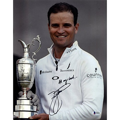Zach Johnson Signed Close Up Holding Trophy 11 inch x 14 inch Photo All My Best Inscribed Beckett