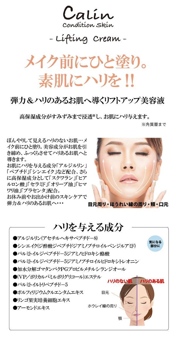 | 弾力&ハリのあるお肌へ導く、リフトアップ美容液。高保湿成分が角質層のすみずみまで浸透し、お肌にハリを与えます。 |