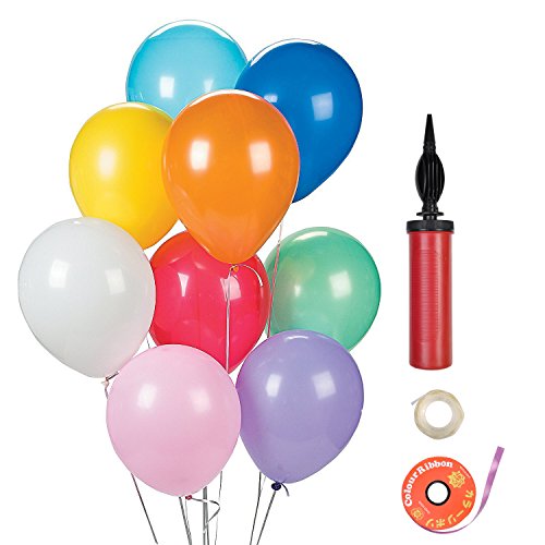 - Balloon Supplies: Each pack has 100 balloons, a hand balloon pump, a roll of ribbon and a roll of glue dots. These party supplies easy to decorate your party.