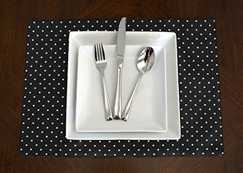 -. Title : Set of 4 - Black & White MINI Polka Dot Modern Placemat Topper Table Mat