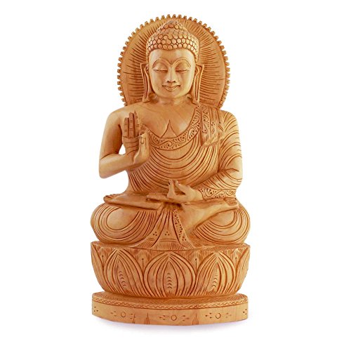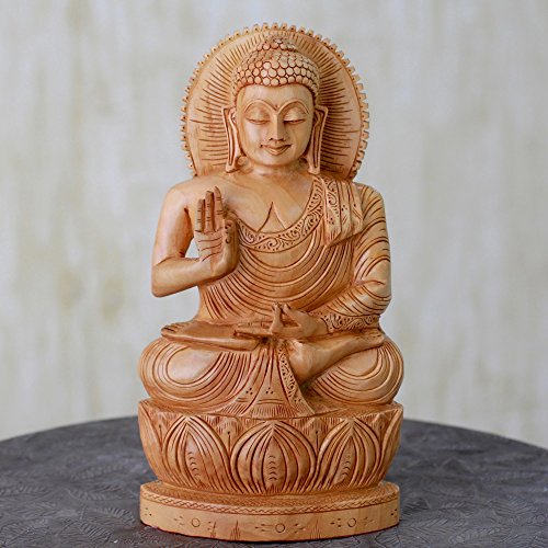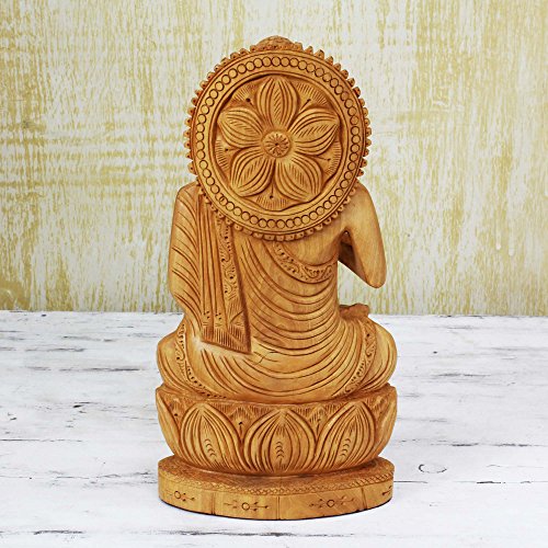 NOVICA Hand Carved Single Piece Natural Kadam Wood Buddha Sculpture From India 'Peace From Buddha'