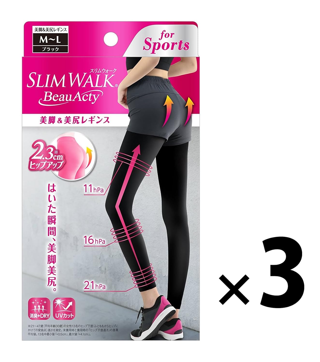 【3点セット】 ピップ スリムウォーク ビューティアクティ 美脚&美尻レギンス M~L