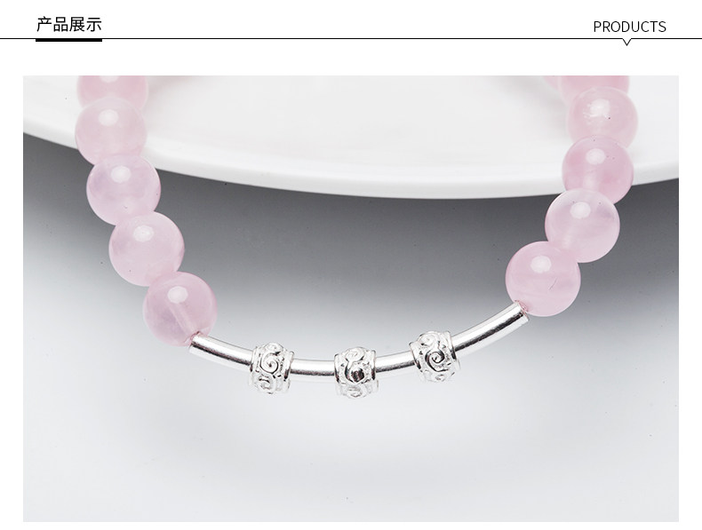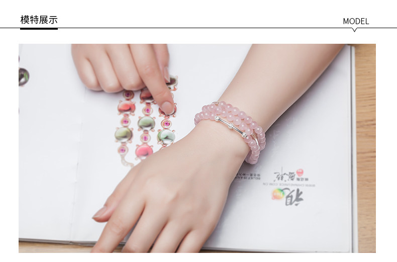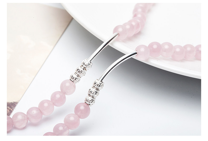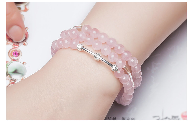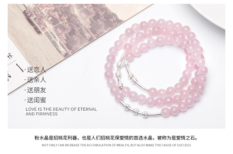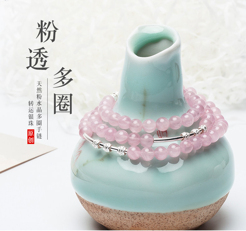 天然粉水晶手链女925银珠首饰品多圈手串时尚百搭礼物