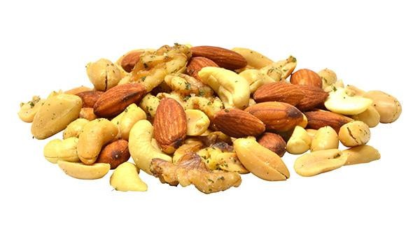 アーモンド、くるみ、カシューナッツ、ピーナッツの4種の香ばしいナッツに、パクチー風味のオイルをかけ、さらに乾燥パクチー粉末をまぶしました。ナッツの食感とパクチーのエキゾチックな香り、後引く美味しさをお楽しみください。 |
