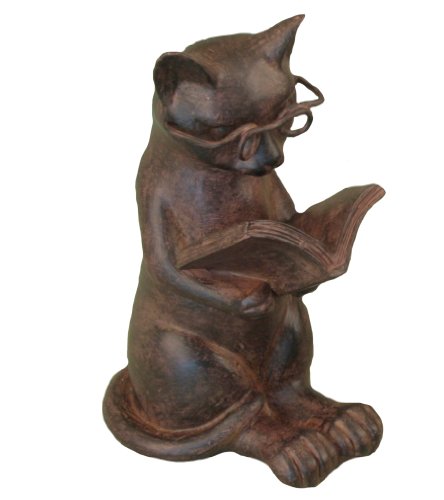 Young's Resin Cat Reading Figurine, 4.75-Inch