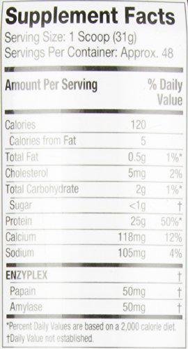 25g of protein per scoop, with less than a gram of fat and only 2g of carbs