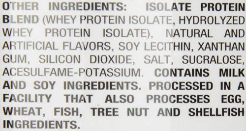 100% ISO whey. Contains only the most rapidly absorbing whey protein isolate and hydrolysate for an immediate supply of anabolic protein. 25g of protein per scoop, with less than a gram of fat and only 2g of carbs. Powered by ultra-pure, cold-processed microfiltered whey protein isolates. Whey protein isolates are the purest and most bio-available form of whey protein you can feed your body.Feature