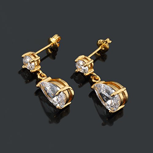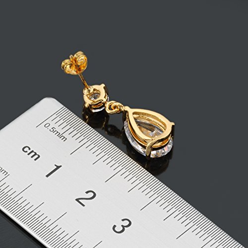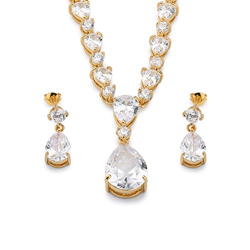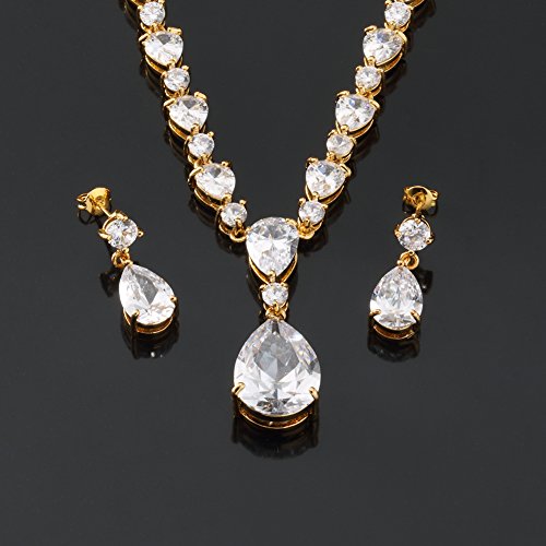 -. Title : Rellecona 18k Yellow Gold GP Teardrop and Round Cubic Zirconia CZ Necklace, Dangle Earring Set