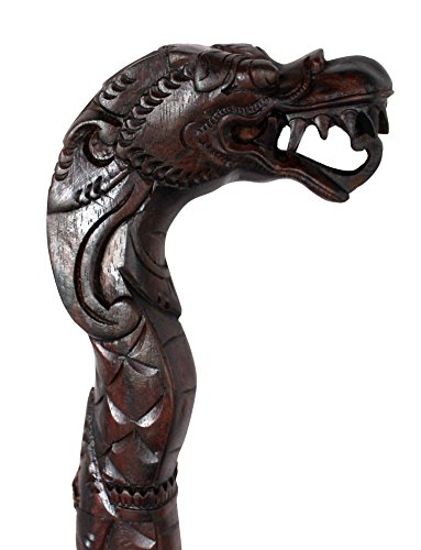 RaanPahMuang Thailand Darkwood Walking Stick or Cane Carved Dragon Head HardWood
