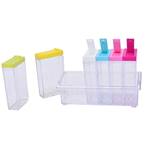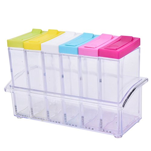 CoscosX Set of 6 Spice Shaker Seasoning Bottle Jar Condiment Storage Container with Tray for Salt Sugar Cruet