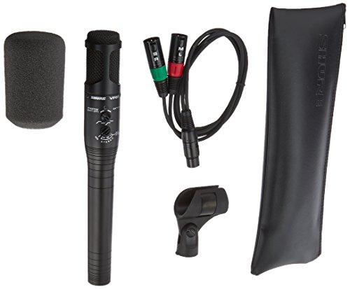 -. Feature : Time-coherent, Mid-Side (M-S) design for optimal stereo imaging, built-in stereo matrix for direct control of the stereo spread; direct M-S outputs available & mono compatibility ideal for broadcast applications / 40 to 20,000 Hz frequency response, low noise and distortion, & wide dynamic range. / Switch-selectable, low-frequency roll off (12 dB/octave below 80 Hz) for reduced pickup of ambient noise & stand vibration / Operates on phantom power or a 6V camera battery & LED power indicator / Internal shock mount for reduced stand vibration and handling noise, built-in "pop" screen & includes windscreen, swivel adapter, and Y-cable