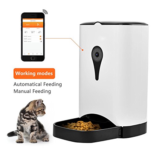 -. Feature : *You will be able to see your pets and feed them from remote using Wi-Fi, 3G or 4G connection. The device uses your home Wifi to stream live video to your smart phone over the internet. Unlike the our competetion, rest assured this device is armed with end to end encryption technology to protect your P.R.Ivacy. / *To use the device download the 100% free iOS and Android app, no monthly or annual fees. Once you configure the mobile app with the device, feeding your pet is a matter of pushing a button on your smart phone. / *You can also talk to your pet using the built in two way audio. It has 12 months warranty if there is mechanical failure at no fault of yours. / *You can take picture and video using the high resolution (1280 * 720) and share to your favorite social media sites from within the mobile app. Your pet will think you are close to them at all times. / *You can use the mobile device to also monitor your house just like a CCTV streaming real time video straight to your smart phone 24/7. In case someone breaks into your home, you can simply record still image and video of them. Or if you choose so, you can scream at them using the speaker of your smart phone.