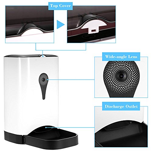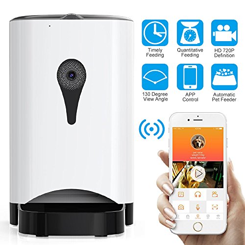 -. Title : Carina smart automatic pet food dispenser 1280 720 res armed with video/audio and 130 degree wide home surveillance HD camera and 9.7 x 11.8 x 15" white color feeds large dogs to cats