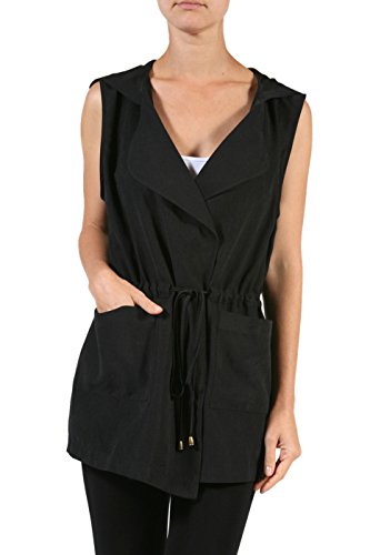 -. Brand : 2LUV -. Department : womens -. Feature : This cool and unique sleeveless vest features a draped open front design, hood, front pockets, and drawstring waist. / Juniors Sizing -. ProductGroup : Apparel -. ProductTypeName : APPAREL -. Title : 2LUV Women's Sleeveless Drape Front Hooded Vest