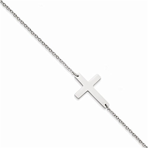 -. Title : Stainless Steel Polished Sideways Cross Anklet Length 10"