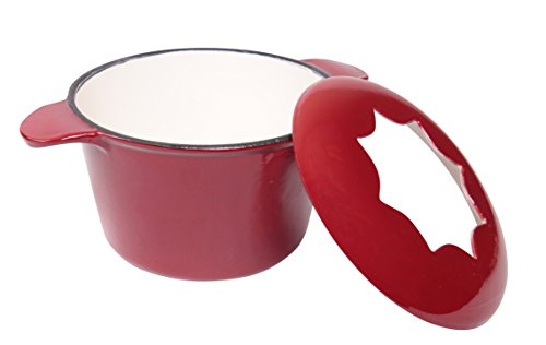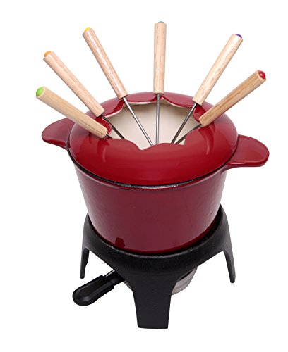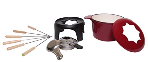 JMilles UH-CI256 1.5QT Cast Iron enamel Fondue Set, Stylish Red Porcelain Enamel