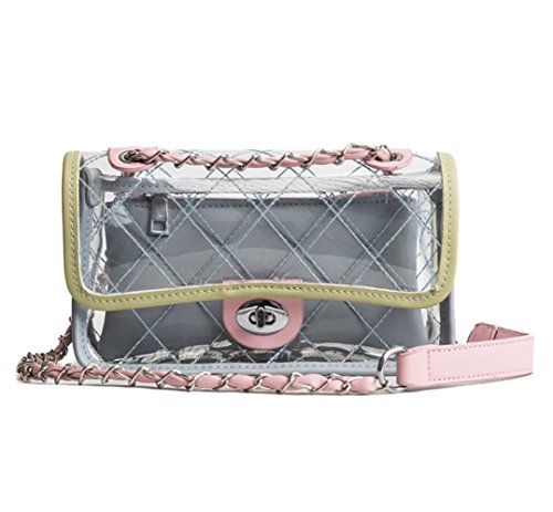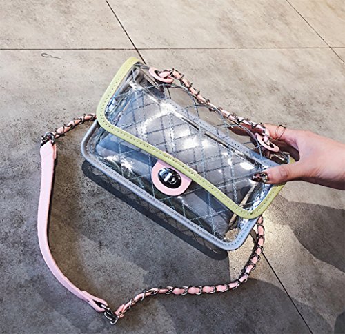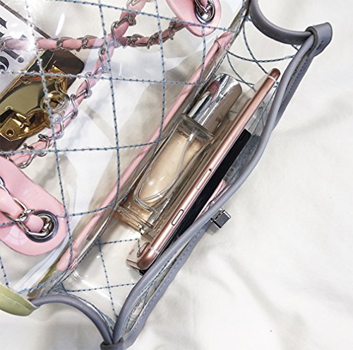 Vintage Clear Quilted Pu Leather Chain Strap Tote Shoulder Handbag for Women