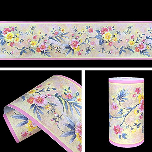 -. Title : SimpleLife4U Sunmer Flower Removable Vinyl Wallpaper Border Peel & Stick Wall Borders Kitchen Bathroom Tiles Decor Sticker