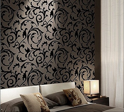 -. Title : QIHANG Black Victorian Damask/simulation Striae Wallpaper Roll 0.53m(1.73' W) x 10m(32.8' L)=5.3㎡ (57 sq.ft)