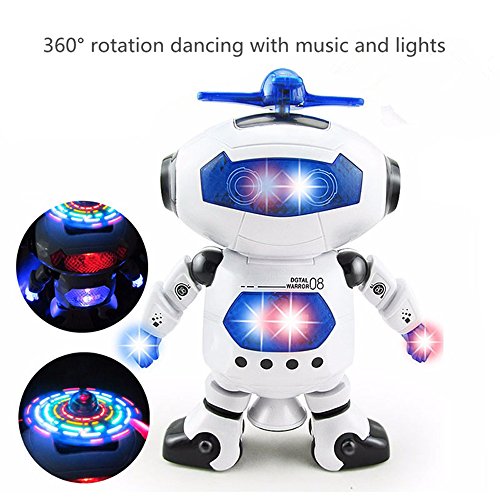 -. Title : OWIKAR Robot Toys Electric Dancing Robot Toy 360 Rotation with Light and Music Cool Robot Model Toy For Kids Boys Girls Toddlers Battery Operated Small Electronic Robots Smart Space Robots