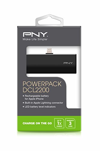 PNY DCL2200 2200mAh 1 Amp PowerPack - Portable Rechargeable Battery Charger with built-In Lightning connector for Apple iPhone