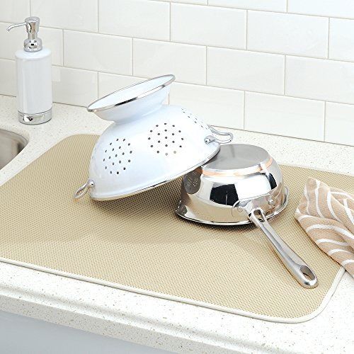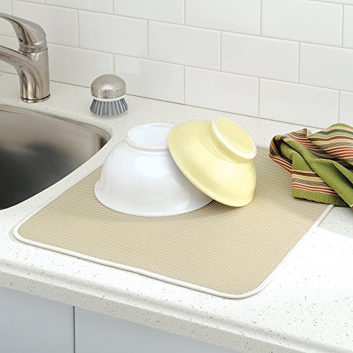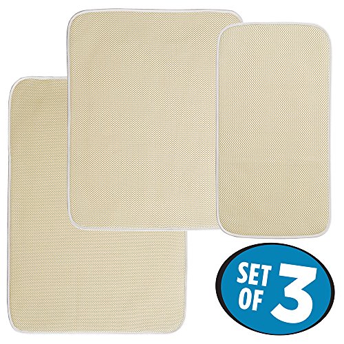 Set of 3 dish drying mats provide a soft cushion for dishes and stemware; Ideal for drying glassware, dishes, silverware, pots and pans