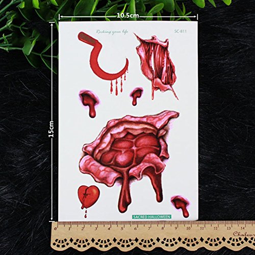 Halloween Tattoo Stickers, Temporary Tattoos Waterproof for Kids Halloween, Water Transfer, Long-Lasting, Easy to Apply, Scary Body Blood Wound Fake...