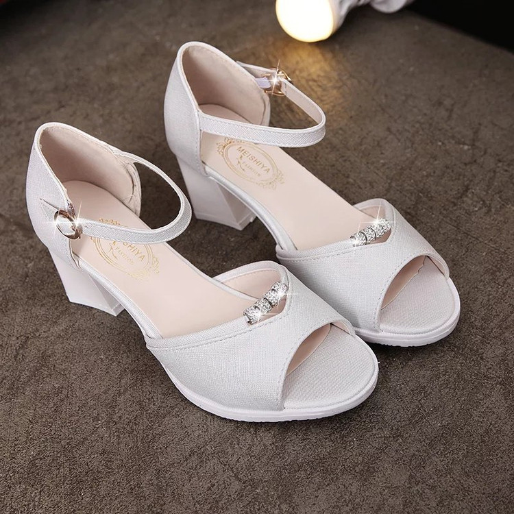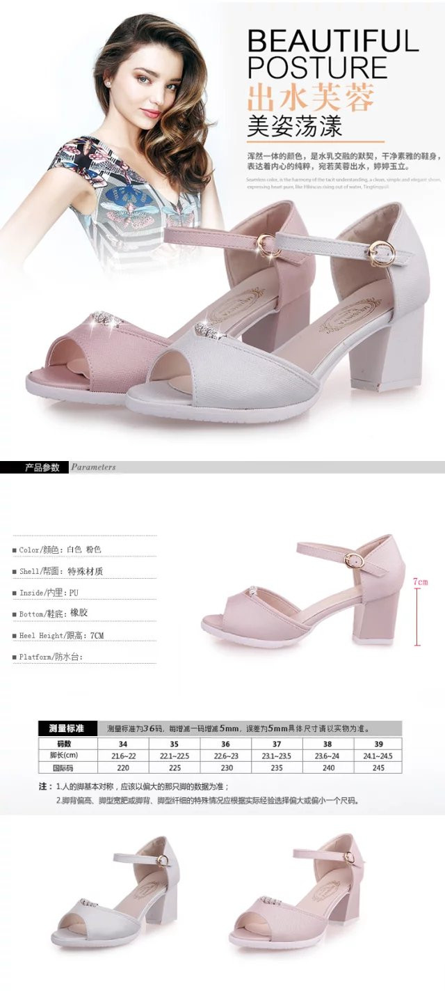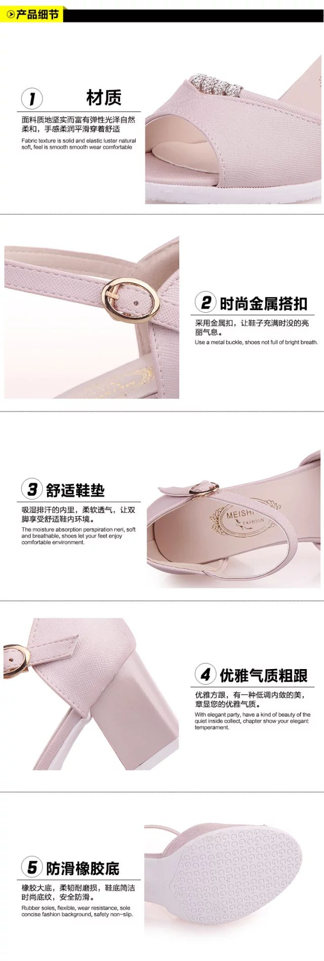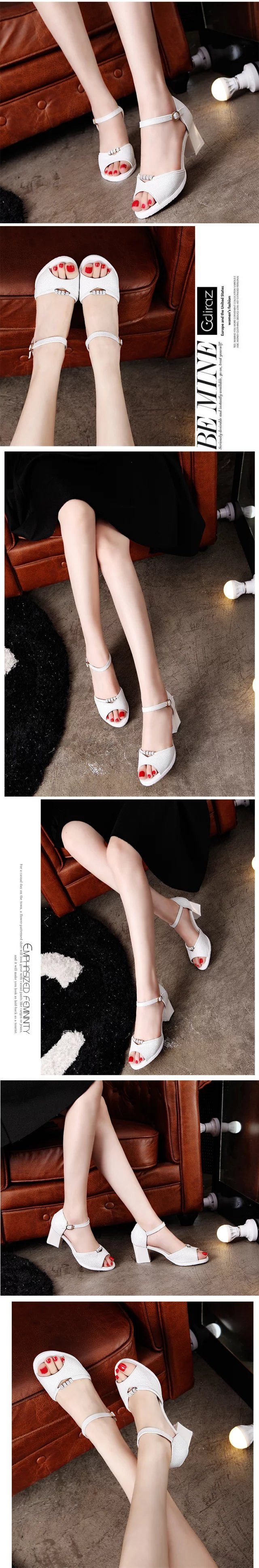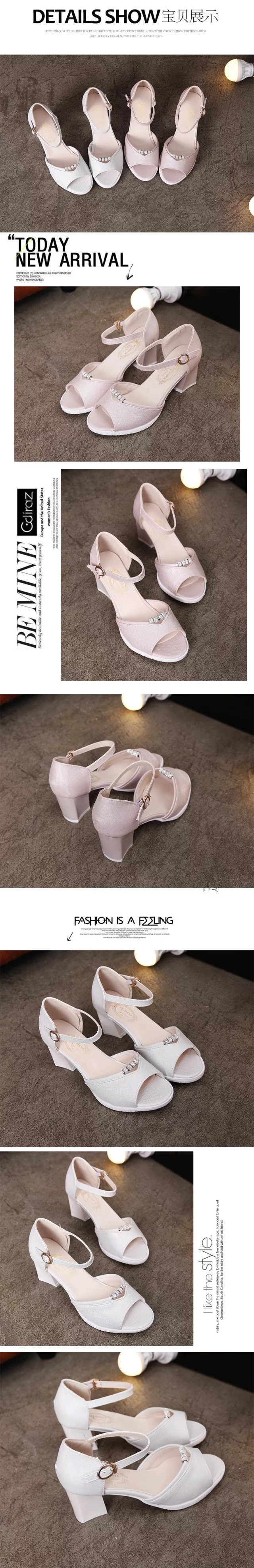 春夏季新款韩版学生女鞋子扣带镂空甜美鱼嘴凉鞋女粗跟高跟鞋中跟