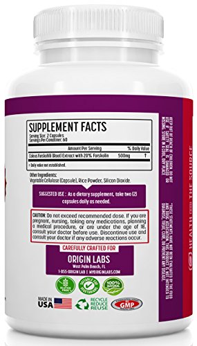 -. Feature : PREMIUM FORSKOLIN EXTRACT 120 VEGETABLE CAPSULES 500MG PER DOSE - Our 100% pure forskolin extract is 20% forskolin with high potency. / BEST VALUE ON AMAZON. 60 DAY MONEY BACK GUARENTEE! Our forskolin extract is the highest quality with high potency. However, if you are not satisfied, you have up to 60 days for a full refund. / LOSE BODYFAT AND INCREASE METABOLISM! This extract has been used to increase metabolism and trim body fat safely and naturally. / 100% NATURAL AND FREE OF ADDITIVES. There are no fillers, binders, or harmful preservatives. This product is vegetarian safe and Gluten free. Our product is manufactured in an FDA inspected and GMP certified facility in the USA. / NATURAL cAMP ACTIVATOR. cAMP or cyclic AMP is a key signaling molecule that plays a major role in hormone pathways. Benefits range from hormonal balance to anti aging.
