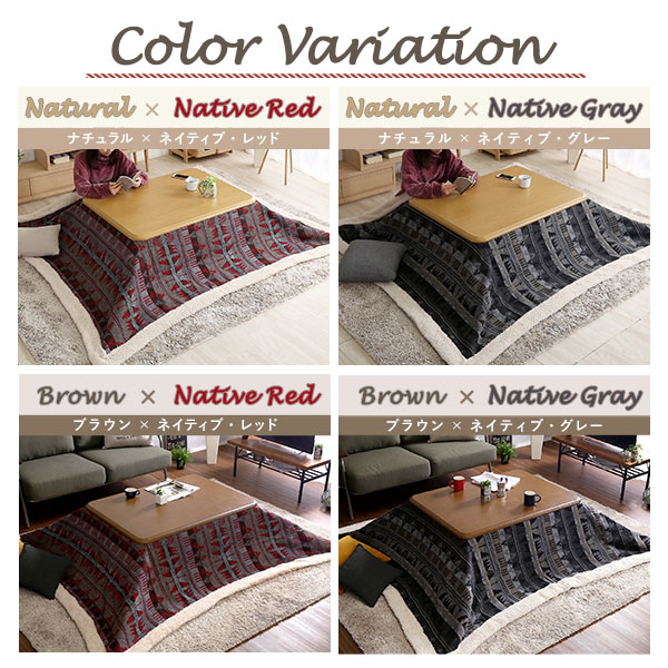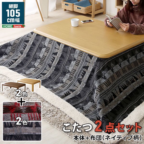 ●木のぬくもりを感じる飽きのこない継脚家具調こたつと、北欧調ネイティブ柄薄掛け布団の2点セット!