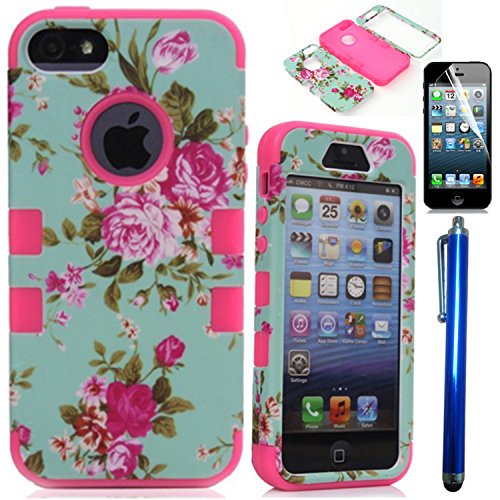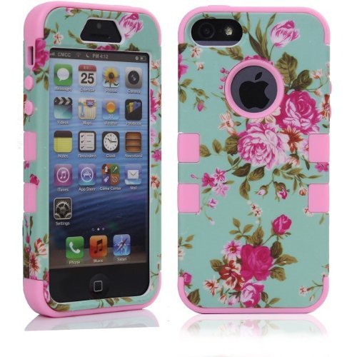 iPhone 5s Case, Johncase® [Floral Series] 3 Layer Protective Hard Frame with Soft Rubber Interior for Drop Protection and Shockproof Durable Cute Phone Case for iPhone 5 5S SE (2015 Item) - (Floral Pink)