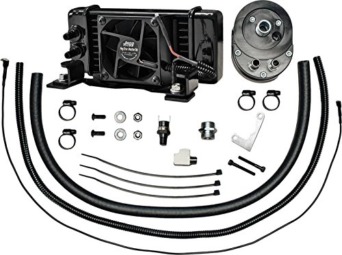 For 1999-2008 FLHT/FLHX/FLHR/FLTR and FL Trike models The Jagg High Performance 10-row Two-pass Oil Cooler Kit with Integrated Fan. Designed to perform as well at low vehicle speeds and stop-and-go traffic as on the open highway. The Jagg Fan-assisted Oil Cooler Kit includes cooler, sealed-motor fan, oil hose, mounting hardware, automatic thermal fan switch, and wiring harness, to allow simple bolt-on application with use of a Jagg Offset Oil Filter Adapter (sold separately). ? Fan turns on automatically at circa 205 ºF ? Fan pulls a full 150 CFM across cooler ? HyperFlow Technology ensures unsurpassed flow and heat rejection