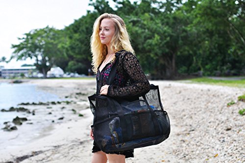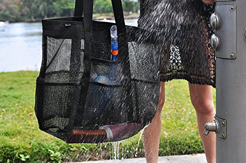 Your beach bag should leave sand and water where it belongs this Summer. . .Our bag is made from Durable PVC Mesh on All Sides and most importantly the Bottom, secured with quality stitching and finished edges.This means you can make trips to the beach without worrying about water, sand, and musty smells following you home. It will save you time and money because you can quickly pack up the kids toys, shake and wash them off, and get going without a mess.