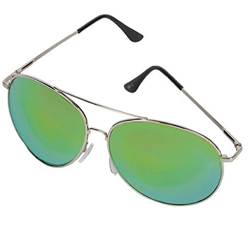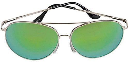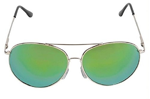 Metal Frame Large Aviator Sunglasses 100% UV Protection - Green Mirrored Lens