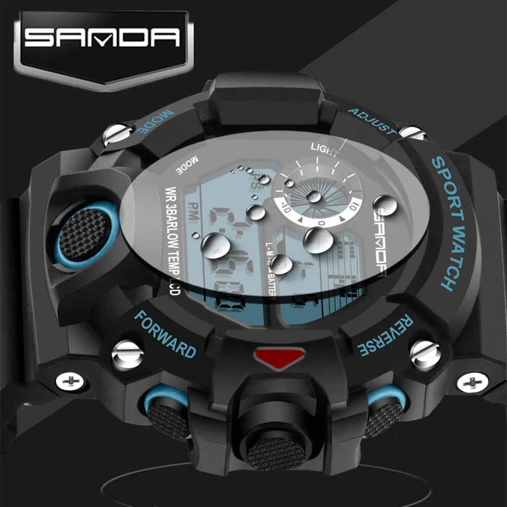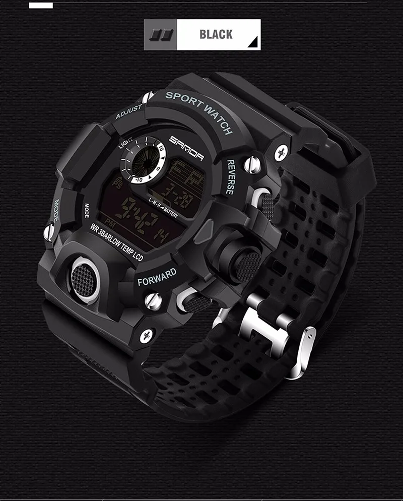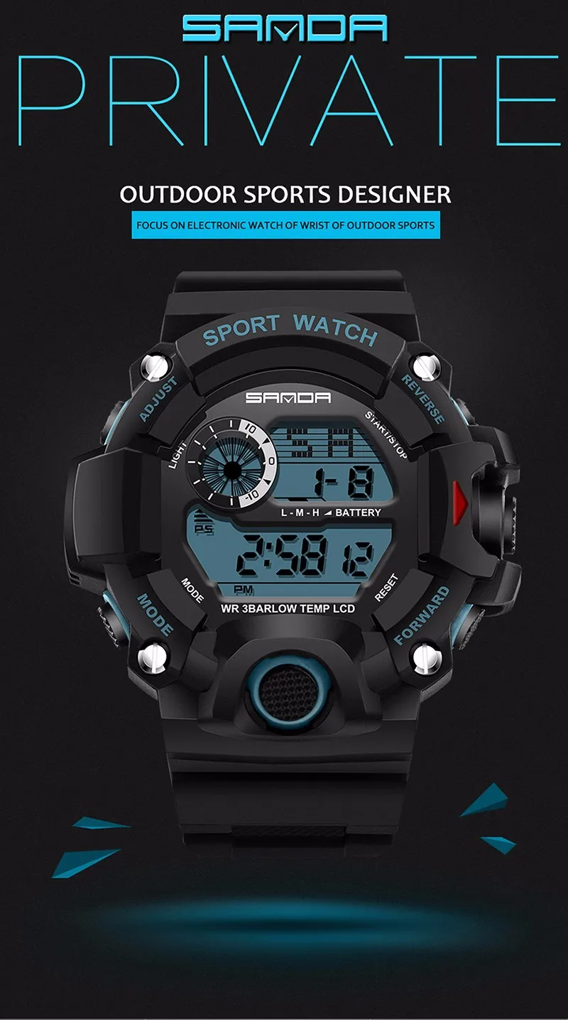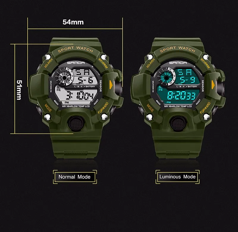 Feature:Alarm,Back Light,Water Resistant,Shock Resistant,Complete Calendar,Chronograph,LED display